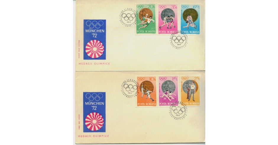 / Medalii Olimpice Romania - 1972 Romania, 3 FDC Medalii olimpice Munchen (serie ... - 9 țăriau obținut medalii de aur în prima zi a jocurilor olimpice: